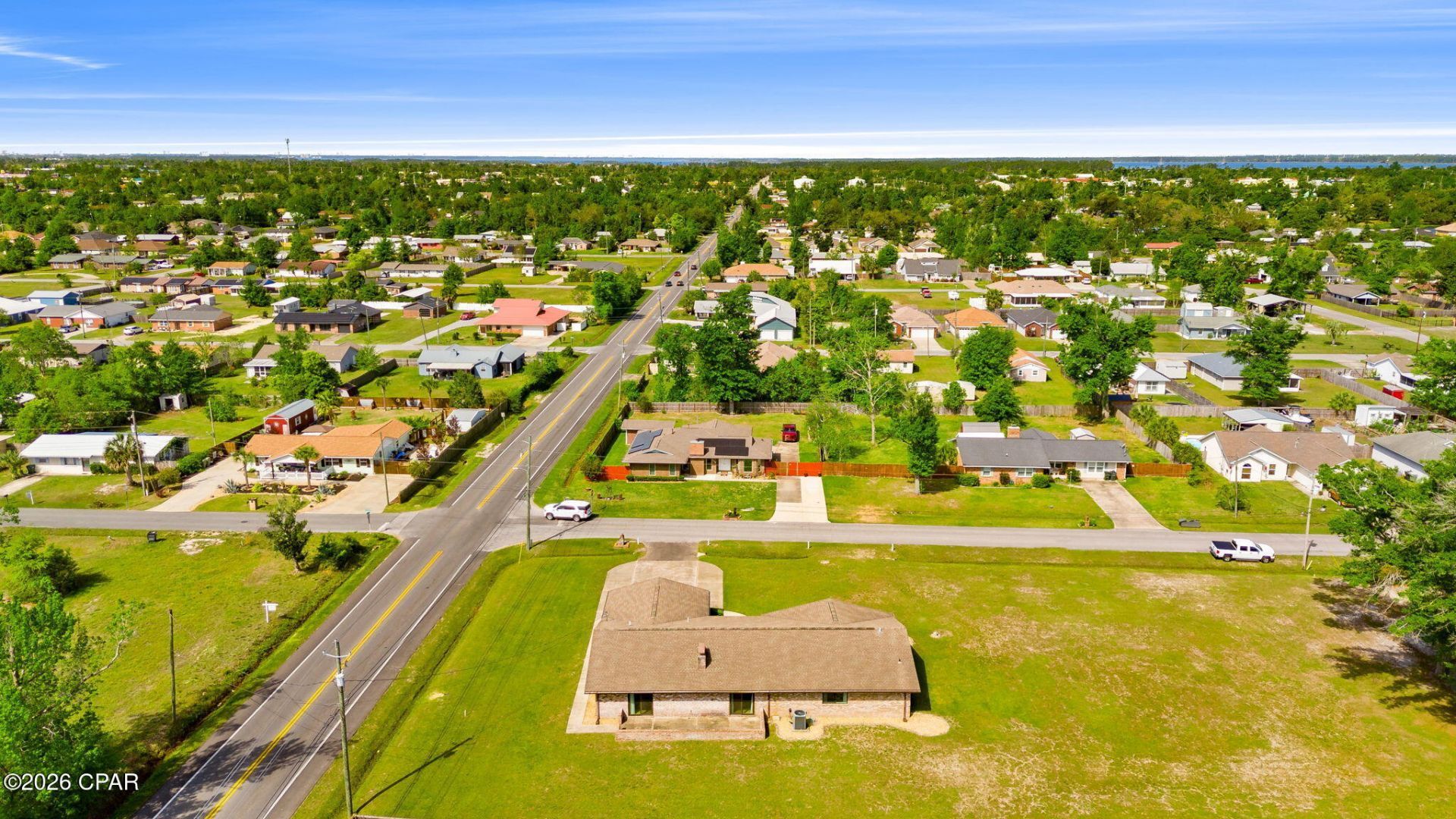 A rare opportunity for a huge corner lot in Lynn Haven. This beautiful estate spans roughly 0. 86 Acres. The charming ranch-style home is equipped with 3 large bedrooms, 3 full bathrooms,, two spacious living areas, a large laundry room and an oversize 2 car garage. This home totals over 2,500 SF of air-conditioned space, with a convenient layout and tons of bonus space. Enter through the covered front porch area into the first open living room and dining area. Living room one has a beautiful fireplace, sliding glass doors, and plenty of space for large furniture. To the right, you'll find a big open kitchen with plenty of counter space, storage and cabinet organizers. The dark solid wood cabinetry goes great with the granite countertops and matching modern appliances. On the Southeast corner, the second living/den area offers a flexible space that is perfect are for hosting and gathering. Plenty of room for a home office, playroom, or easily convert all or part of the space into a large fourth bedroom. Across the hall, on the southwest corner, walk into a huge laundry room with built in cabinets for storage. Washer and dryer included! Walk through to an oversized double attached garage with a dedicated utility room. At the end of the hall, another exit and a full guest bathroom with walk-in shower. At the North end of the home, you'll find 3 spacious bedrooms, including a huge master bedroom with an ensuite bathroom and a big walk-in closet with custom heavy-duty shelves. Each bedroom has it's own large closet and a 3rd bathroom in the hall. Wide hall ways makes this home feel even more spacious and lots of storag space helps to keep things tidy. Perfect for a busy, growing family with an active lifestyle. Step outside to find a massive yard, perfect for weekend activities, or room to expand. A large driveway connects sidewalks around the south side, leading to the back yard and a cozy brick terrace. The home is situated on the south side of the property, This leaves flexibility for how you use the additional land. There is plenty of room for hobbies, activities and more than enough room to build a second house on the north side of the property! Location is key, and this location is close to everything. Minutes from dining, shopping, golfing and more. Zoned for Lynn Haven Elementary, Mowat Middle and Mosley High School. Recent updates include all new duct work, seamless gutters, new water heater, paint, 6 year old roof and HVAC. NO HOA, transferrable bond, modern appliances including washer and dryer. Don't wait. Come tour this lovely estate today!