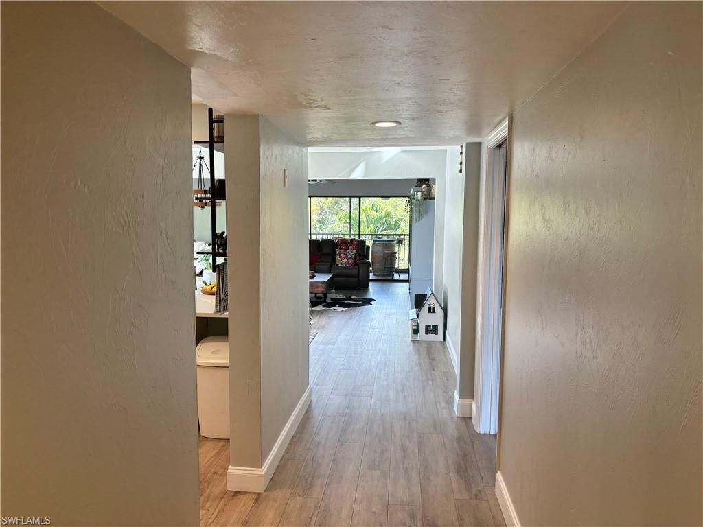 This inviting second-floor end-unit condo offers comfortable living with two bedrooms and two bathrooms. Filled with natural light. The kitchen is beautifully designed with butcher block and quartz countertops, all-new white soft-close cabinetry, a convenient lazy Susan, new dishwasher, and newer stainless steel appliances. Both bathrooms have been tastefully renovated, and the home features upgraded paint and an ultra violet system for the A/C. Relax and unwind on the private lanai while enjoying peaceful canal views. The living area showcases stylish laminate flooring, and the home also includes updated plumbing for added peace of mind.