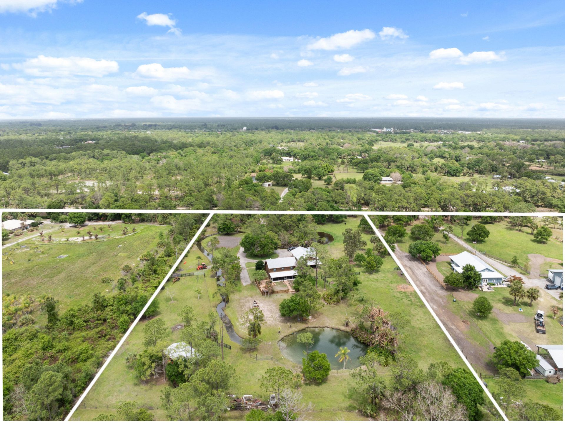 Charming farmhouse retreat offering the perfect blend of country living and convenience. This fully fenced 5 ACRE property w/ southern exposure features a picturesque lake and a babbling creek, along with a pole barn, livestock barn with hen house/horse stalls, and adtl shed for storage. Enjoy a bright open-concept layout with a first-floor primary suite, screened back porch with spa overlooking lake. Circular driveway provides easy access, no HOA's add flexibility. A true farmer's dream-ideal for growing your own fruits and vegetables-with an easy commute to nearby amenities. Gas on property.