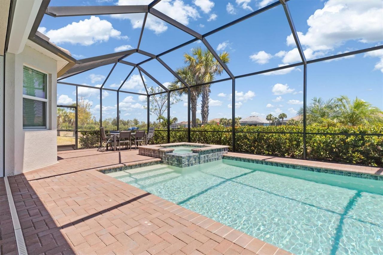 ENJOY THE FLORIDA LIFESTYLE! Newer (2021 built) pool home on canal leading to the Gulf, NO BRIDGES! 2357 sq ft under air, 3 beds, 2.5 baths and DEN/OFFICE in gated community. Make the most of waterfront living with your boat ready to go on the 10,000lb lift behind your home. Enjoy a day on the water, then come home and relax by the saltwater pool! Truly move-in ready home, TURNKEY FURNISHED, with all-tile flooring, IMPACT WINDOWS, FRONT DOOR & SLIDERS for peace of mind and open floorplan with high ceilings, perfect for entertaining or everyday living! Located on an oversized lot in a small cul-de-sac with paver driveway and parking for 6+ cars, this property is centrally located in a small, friendly, gated community with only 165 homes. When you enter the front door, you immediately see the views over the pool and canal from the family room with high, trey ceiling and sliders which open to the lanai and pool area. The well-equipped kitchen has a huge granite island, designer backsplash, double oven/microwave, stainless appliances, plenty of cabinets/storage and opens to the formal dining and dinette areas, as well as overlooking the family room for maximum enjoyment of cooking or entertaining at home. This is a very popular and flexible floorplan, with split bedrooms and a separate DEN/OFFICE with double doors, perfect for hobby, library, at-home working or could even be used as a 4th bedroom. The home is well elevated, with a berm behind the house, so has not experienced any flooding from recent storms (and the entire neighborhood remained dry). Sellers have also added an automatic hurricane shutter to the lanai for additional peace of mind and security, which allows the owner to lock and go if they travel or want to use as a second home. LOW HOA FEES include gate, yard maintenance and landscaping. Florida living is all about the outdoor space! Enjoy your screened SALTWATER HEATED POOL & SPA year-round, with pavered lanai and pool deck which features an OUTDOOR GRILL AND FRIDGE for you to enjoy cook-outs while relaxing in the pool area. From the screened pool deck, you can take the COMPOSITE walkway to the dock and boat lift and enjoy the sunsets and view over the waterway, including the canal leading to the lock. With no bridges, you are 5 minutes from Charlotte Harbor and can make the most of all the boating locations - Punta Gorda, Myakka River, ICW, Cabbage Key, Boca Grande & more! Enjoy exploring and finding hidden beaches or fishing spots! Discover this hidden gem in the Port Charlotte/Englewood area, with easy access to the beaches, boating, trails, shopping and restaurants. You are a short drive from Wellen Park with the Atlanta Braves Spring training stadium and the Tampa Bay Rays Spring Training stadium in Port Charlotte, and have easy access to Englewood's Dearborn Street for unique shopping, dining and the weekly Farmers Market. There are 99 holes of golf at Rotonda Golf & Country Club and quick access to I-75 for trips to Tampa and Naples. This is a fast-developing area which has retained its small-town charm and you will always have things to do! CALL TODAY FOR A SHOWING!