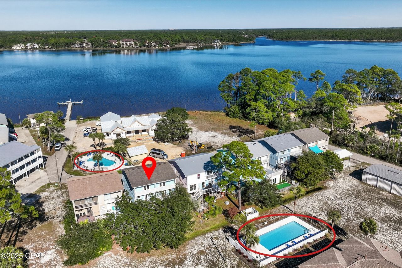 Rare opportunity to own both sides of a beautifully updated duplex in West Panama City Beach with picturesque views of Lake Powell, one of Florida's largest and most pristine coastal dune lakes. Located in the Pirates Cove community, this exceptional property boasts exclusive access to the Gulf via a private dock and boat launch, offering a refined coastal lifestyle ideal for boating, fishing, paddle boarding, and kayaking. Enjoy direct water access from your own backyard, while being just minutes from the sugar-white sands of the Gulf, the boutiques and dining along Scenic Highway 30A, and the natural beauty of Camp Helen State Park. (149 CAIN ROAD AND 150 CAIN ROAD BEING SOLD TOGETHER PARCEL IDS: 35257-060-000 AND 35257-050-000) Pirates Cove also features two community pools, and the elevated coastal design of this home provides spacious covered parking beneath the home, accommodating multiple vehicles, a boat, and offering flexibility for storage and outdoor gear. The interiors feature a bright, open-concept layout with a relaxed coastal aesthetic and thoughtful updates throughout. Expansive living and dining areas are filled with natural light, creating an open and inviting space ideal for entertaining. Updated kitchens showcase granite countertops, stainless steel appliances, gray shaker cabinetry, and generous bar seating, seamlessly connecting to the living and dining spaces. Both units are tastefully updated, turn-key furnished, and supported by a strong rental history, making this an exceptional investment opportunity, multi-family retreat, or private coastal getaway.