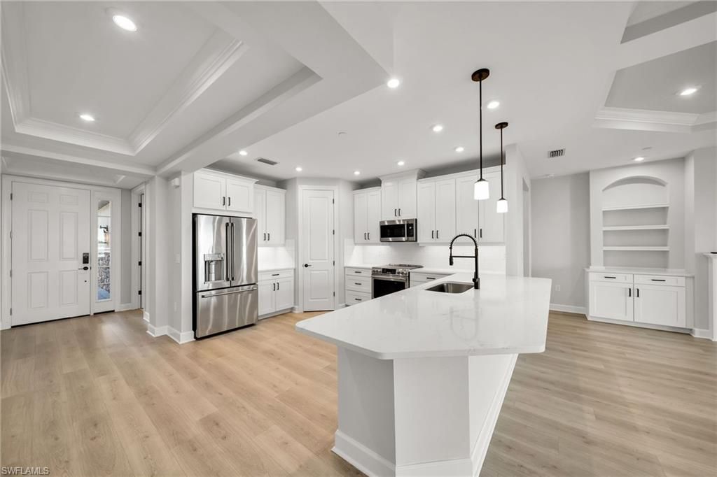 Beautiful and bright first-floor unit located in the highly desirable Esplanade at Hacienda Lakes community in Naples. This residence features numerous upgrades throughout, offering a refined and modern living experience. The open-concept layout is enhanced by high ceilings and abundant natural light, creating a spacious and inviting atmosphere. 2 Bedrooms and 2 Bathrooms, Laundry, Pantry, walking clothes, Garage, screen gallery, open concept Living room and Dinning. Large and open Kitchen. Enjoy serene lake views from the main living areas, perfectly complementing the elegant interior finishes. The home includes high-end appliances, premium flooring, and quality craftsmanship throughout. Impact-resistant doors and windows provide added value and peace of mind. The kitchen offers ample cabinetry and counter space, seamlessly connecting to the living and dining areas, ideal for both everyday living and entertaining. The primary suite is well-sized and comfortable, with additional space suitable for guests or a home office. Residents of Esplanade by the islands enjoy access to resort-style amenities, including a clubhouse, pool, fitness center, tennis, pickleball, and beautifully maintained common areas. Vacant and easy to show.