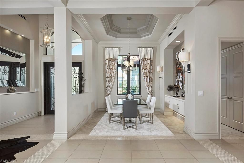 IMMEDIATE GOLF MEMBERSHIP with golf cart. A southern exposure, Model-home provenance on one of the most desirable street in Talis Park, this 3-bedroom with den/office/flex space coastal retreat presents a 180° panorama across a shimmering pond—where bald eagles and pelicans dip into for a bite—sitting on the Newly resurfaced Dye/Norman–overviewing of the 8th fairway, setting a distinctly Resort tone. Inside, 14-foot vaulted ceilings and expansive glass bathe the interiors in natural light, while an entertainer’s kitchen—with double islands, double wall ovens, and refined designer finishes—flows seamlessly into a 29×20 great room with floor to ceiling glass sliders giving Florida living at its best, full bar, and dining area; the private owner’s suite offers a generous bath & separate dual headed shower area, complemented by two en-suite guest rooms, all with walk-in closets, and a discreet office/den/flex space room . Beyond, a screened outdoor pavilion presents two lounge areas anchored by a fireplace/TV and a well-appointed summer kitchen with dining , all overlooking a pool SECLUDED from "cart paths" with a pond view for rare privacy; three Air-conditioned garage bays with custom built cabinets , newly electronic Auto/wifi CAT-5 Hurricane shutterblinds, Brand new whole house generac generator, pool heater & main AC has been replace last year, completes this residence. Home being sold furnished.