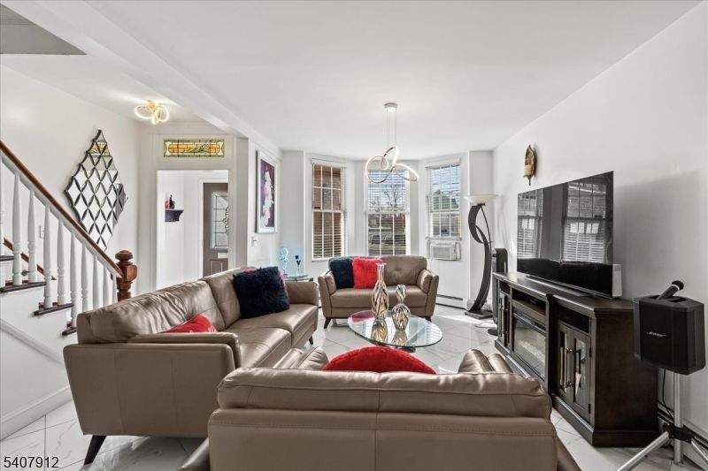 Welcome to this stunning and spacious home, featuring 3 generously sized bedrooms and 2.5 bathrooms. As you enter, you'll be greeted by a beautiful antique stained glass window above the doorway, adding timeless character and charm. The formal living and dining rooms offer an elegant and warm atmosphere, perfect for gatherings or entertaining guests. The main floor boasts exquisite white porcelain tiles that flow seamlessly into the bright, open kitchen a chef's dream with ample counter space, abundant storage, and a layout designed for effortless entertaining. The luxurious main bathroom invites you to relax and unwind with a soothing jet tub, enhanced by a built-in Bluetooth speaker within the ceiling lamp perfect for enjoying music of your choice while soaking in comfort. The home also features a brand new water filter and water softener system, ensuring clean, refreshing water throughout. Step outside to a spacious backyard, ideal for creating your own private oasis with a patio set, pergola, or garden perfectly tailored to your vision. This home's prime location ensures convenience, with nearby elementary and high schools just minutes away, along with the brand new junior high for 7th and 8th graders that opened this year. Local stores, gas stations, the post office, and the NYC bus stop are all easily accessible, and the city is less than 40 minutes away. Schedule your showing today! One photo for the living room, dining room, and backyard are virtually staged/designed