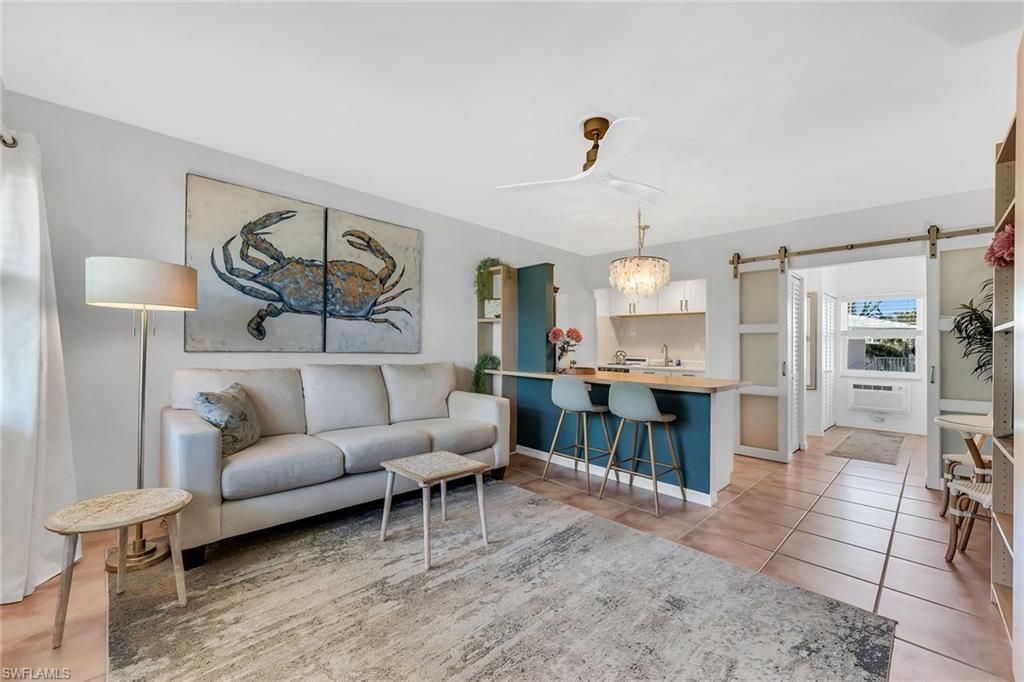 Welcome to Seabreeze South, where island living is effortless and ideally less than a mile from the white sands of Residents’ Beach on beautiful Marco Island. This charming second-floor efficiency is offered fully furnished and showcases a light-filled interior that has been thoughtfully refreshed and tastefully decorated, creating an inviting coastal retreat ready to enjoy immediately. Tile flooring flows seamlessly throughout, enhancing the bright, airy aesthetic while providing durability and ease of maintenance. The residence has been freshly painted and features updated cabinetry with soft-close doors and drawers, blending style with everyday functionality. A new refrigerator, new Wi-Fi-enabled water heater, and a new air-conditioning system provide modern comfort and efficiency. Hurricane-resistant windows and a new storm door add peace of mind, while natural light fills the space through updated pull-down blinds. A DC-powered ceiling fan and tech-forward USB and USB-C charging outlets offer convenient, contemporary touches. The efficient layout maximizes space and versatility, making this an ideal island getaway, seasonal retreat or investment opportunity in a desirable central location. Residents of Seabreeze South enjoy a well-maintained community with an oversized swimming pool ideal for relaxing afternoons in the sun, shuffleboard courts for social gatherings, a clubhouse, additional storage space and assigned parking for convenience. The central island setting places you moments from Marco Island’s popular dining, shopping and everyday conveniences, allowing you to fully embrace coastal lifestyle. Whether you’re seeking a weekend escape, winter residence or potential income-producing property, this beautifully updated and fully furnished efficiency offers exceptional value in one of Marco Island’s convenient locations.