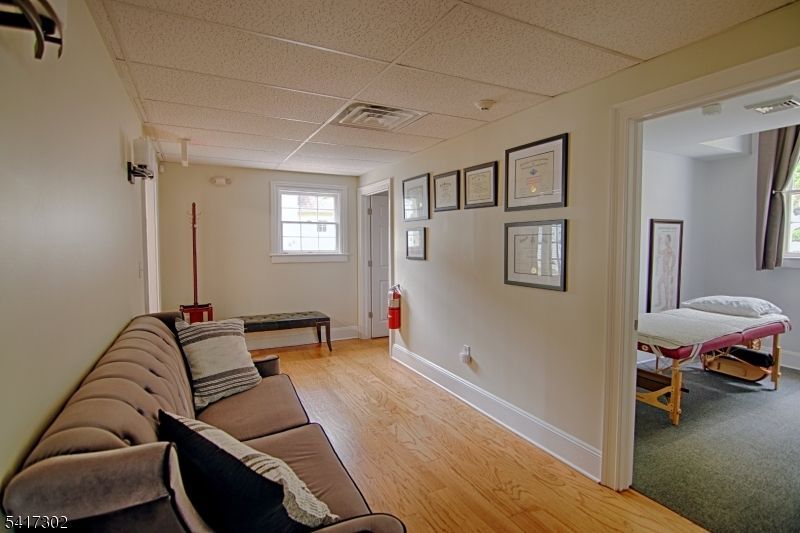 Prime commercial space located in the center of downtown Bernardsville. 1,035 SqFt available. Beautiful street-facing space with a professionally landscaped lot in a bustling business district. The building has a rich history in town and maintains its traditional character with appealing architectural details including wood floors, vaulted ceilings, exposed beams and detailed mouldings. Private bathroom. Ample parking.