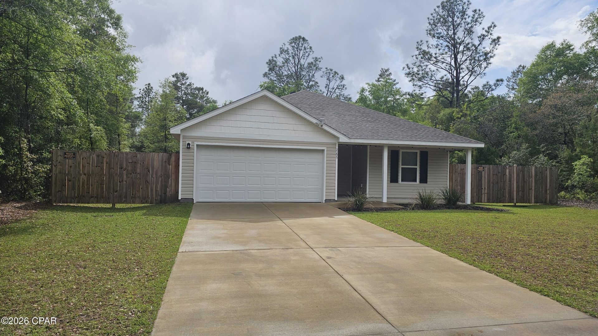 Located in desirable Sunny Hills Unit 1, this luxury floor plan 3-bed, 2-bath home in is ''brand new'' shape. Seller has not ended up living in this home and has not used the appliances. He's added a fence to the entire back yard and stained it for additional protection against WDOs. (Fence work will be completed soon. ) One feature of this beautiful home you'll notice right away is how spacious it feels, all the way from the home's entrance to the master bathroom, bedroom, and large walk-in closet! Home features granite countertops and premium vinyl plank flooring with carpet in the bedrooms to keep your toes warm and toasty during our few chilly northwest Florida winter mornings! Besides lovely granite countertops, large kitchen also has gorgeous cabinets, as well as stainless steel range, dishwasher, and microwave. On top of all this beauty, this home has some great curb appeal! In this location, besides our own beautiful and popular Boat Lake Swimming & Recreation Park, County Library, Wilder Skate Park, plus so many fishing lakes and ponds, you will have easy access via newly 4-laned Hwy 77 to PC, PCB, with our sparkling emerald green waters and white-sand beaches, Chipley and I-10 to the north by 20 minutes, and all the very best the Florida Panhandle has to offer. Please call your favorite Realtor RIGHT NOW to tour this well-built, high quality home. It's not going to last! (** Notes: Actual interior photos should be posted around 4/9. High speed fiber optic should be available for $30/month. We have it and it's always been RELIABLE!!! **)