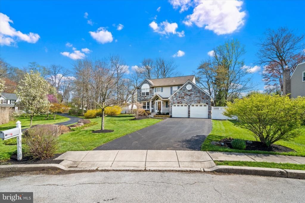 Welcome to 237 Beau Tree Drive, built in 1993 nestled in one of the most sought-after neighborhoods in North Wilmington, right along the PA/DE border. Situated on a unique 0.3-acre corner lot, this stone-front contemporary home offers exceptional curb appeal with a handsome stone veneer façade, an inviting covered porch, and a newly paved driveway 2025. The flat, expansive backyard is mostly grass and framed by mature trees and lush landscaping, and also features a stone paver patio added in 2018. Inside, a turned staircase creates a striking first impression, complemented by custom millwork and crown molding throughout. The sunken living room and formal dining room showcase gleaming hardwood and bamboo flooring, wainscoting, and a large bay window that fills the space with natural light and offers peaceful views of the surrounding greenery. The eat-in kitchen features a cozy breakfast nook, counter seating, a professional exhaust fan, and updated stainless steel appliances, flowing seamlessly into the spacious family room with a gas fireplace—ideal for everyday living or entertaining. Step out to the patio for summer grilling or enjoy a quiet night in. Convenience continues with first-floor laundry. Upstairs, newer carpet and fresh paint provide a clean slate for your personal touch. The second level offers four well-sized bedrooms, including a spacious primary suite with a cathedral ceiling, a five-piece en suite bath, and a walk-in closet. The recently updated hall bath, with a new vanity, flooring, and lighting, serves the additional bedrooms. The finished lower level adds incredible flexibility, offering multiple rooms perfect for a home office, playroom, gym, or hobby space, along with abundant storage. Location is key—just minutes to Concord High School, Target, Trader Joe’s, and with easy access to I-95, PHL Airport, Center City Philadelphia, and New Jersey. A rare opportunity to own a distinctive home on one of the largest lots in the community—don’t miss it!