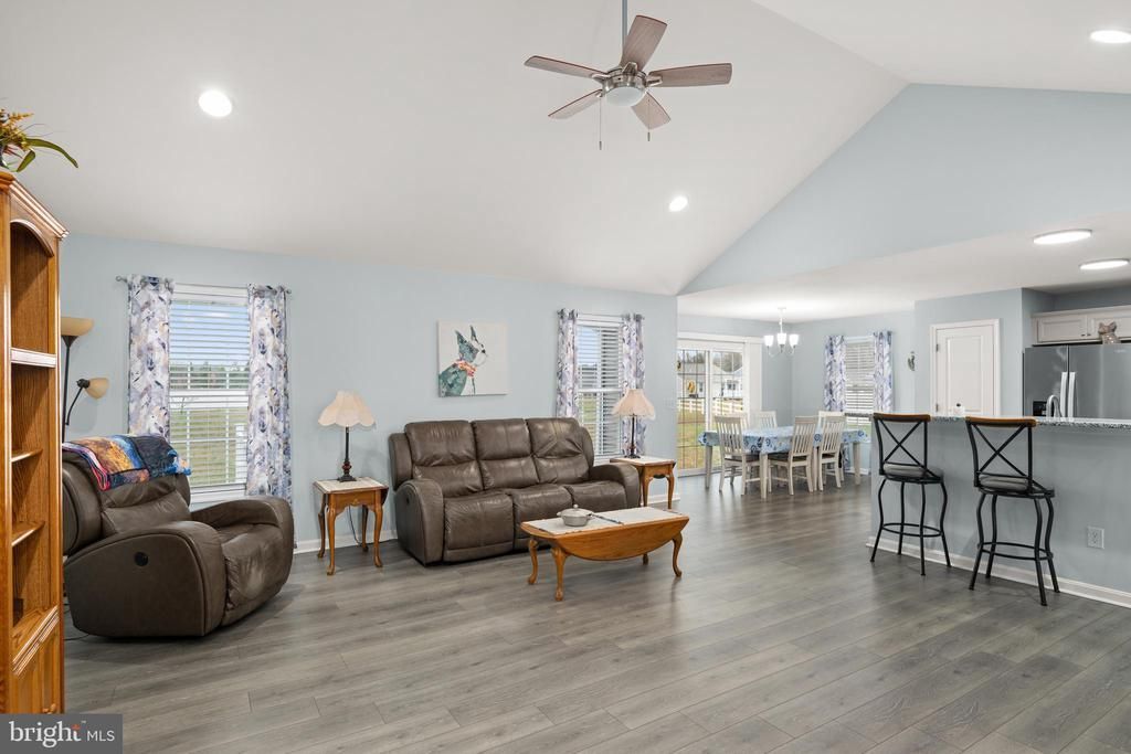 Welcome Home! This beautiful 3 bedroom, 2 bath home offers modern living in a well-established neighborhood on the desirable east side of Seaford. Built in 2021 and exceptionally maintained, this like-new property features an inviting open floor plan with cathedral ceilings that create a bright, airy feel throughout the main living spaces. The kitchen, dining, and living areas flow seamlessly together—perfect for everyday living and entertaining. Step outside and enjoy two outdoor spaces: a rear deck for grilling and morning coffee, plus a patio overlooking the spacious ½-acre lot. Plenty of room to garden, play, or simply relax in the privacy of your own backyard. The home features approximately 1,667 sq. ft. of comfortable living space, along with a 2-car garage and an approved LLP septic system. All three bedrooms are generously sized, with the primary suite offering a walk-in closet and private bath. Located close to shopping, schools, dining, and just a short drive to Route 13 and area beaches—this home blends convenience with peaceful neighborhood living. This is in Deerfield Meadows
