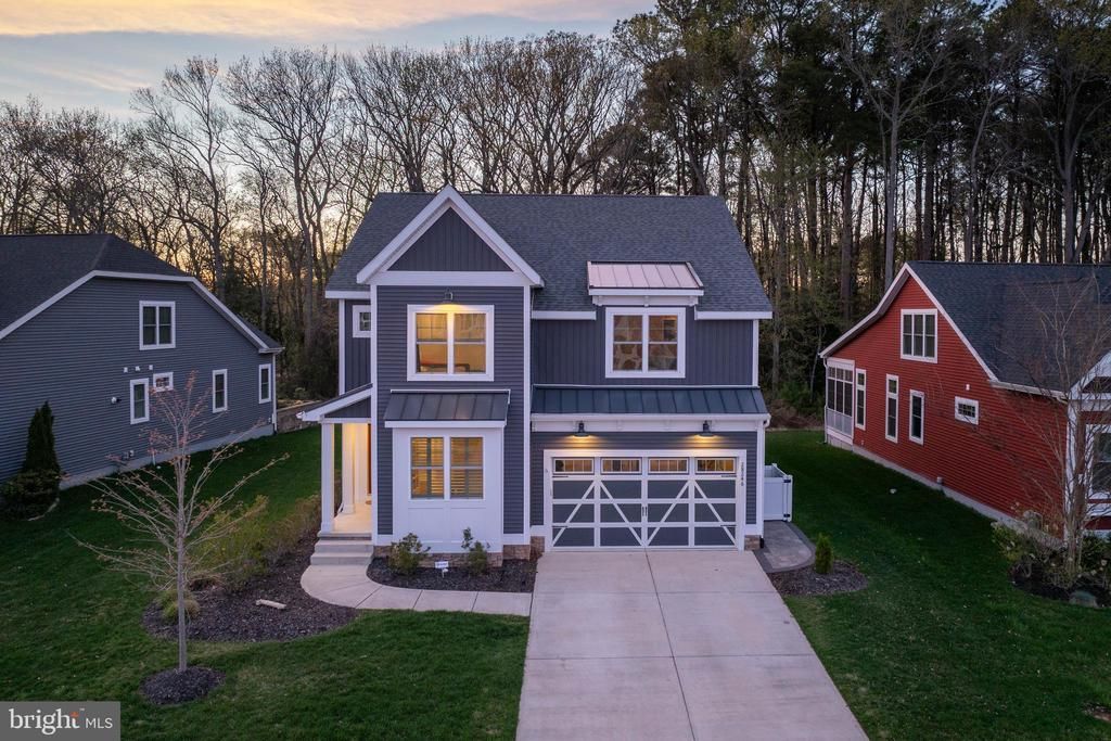 Built in 2021, this Schell Brothers farmhouse-style home delivers a true open-concept design with a vaulted great room, fireplace, and custom live-edge shelving. A full-wall infinity slider opens to a screened porch, grilling deck, and custom courtyard featuring a smokeless fire pit, all set against a private wooded backdrop. The professional kitchen is outfitted with Profile stainless steel appliances and designed for both everyday use and entertaining. The first-floor owner’s suite includes a luxury bath with extended shower, double vanity, and custom closet systems. A second private suite upstairs features a tray ceiling and oversized walk-in closet—ideal for guests or multi-generational living. Additional highlights include 4 bedrooms, 3.5 baths, a spacious loft with built-in entertainment center, unfinished storage, storage under the stairs, a laundry room with utility sink and cabinetry, fenced backyard, paver walkways, and all builder warranties still in place will convey to the new owners. Located in a quiet community just 5 miles to the Delaware beaches, with a clubhouse and infinity-edge pool.