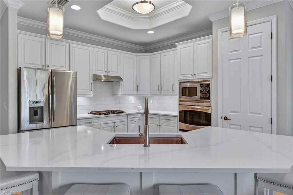 Dreaming of a stunning single-story Naples residence with sweeping lake views, this exceptional three-bedroom plus study or four-bedroom, two-full-bath home is in the prestigious resort-lifestyle gated community of Fiddler’s Creek in the sought-after Millbrook neighborhood, offering an ideal blend of elegance, comfort and thoughtful design. Striking exterior stonework, a paver driveway, lush landscaping, and a timeless tile roof create impressive curb appeal, while impact glass windows and sliders throughout and a new generator installed in 2023 provide peace of mind. Go through the artisanal glass entry door into a welcoming foyer accented by detailed crown moldings, tray ceilings and designer lighting that continue throughout the home, while the split-bedroom floor plan offers privacy and functionality, seamlessly connecting the spacious living area to the dining alcove highlighted by an elegant chandelier, ideal for intimate dinners or festive gatherings. The entertainer’s kitchen serves as a centerpiece, featuring gleaming quartz countertops, stainless steel appliances, a natural gas cooktop, wall oven, updated sink, a generous center island with seating, and a walk-in pantry that make the space stylish and functional. Wood flooring in the bedrooms creates a warm retreat, with the primary suite offering dual walk-in closets, direct lanai access, and a spa-inspired en-suite complete with dual vanities, a frameless glass shower, soaking tub and private water closet, while double glass doors open to a versatile bonus room ideal for a home office, study, fitness space or guest accommodations. Outdoor living shines with a screen-enclosed saltwater heated pool and spa overlooking a serene lake backdrop, complemented by an outdoor kitchen for effortless entertaining, while additional highlights include an attached two-car garage, plantation shutters, and a well-appointed laundry room with new washer and dryer, utility sink and cabinetry. Residents enjoy the unmatched resort lifestyle of Fiddler’s Creek, featuring a state-of-the-art fitness center with trainers and classes, active tennis and pickleball programs, scenic walking and biking paths, and a spectacular resort pool with waterfalls, slides, hot tub, sauna, and steam room, along with fine dining at the elegant restaurant or poolside bar and grill and a vibrant calendar of social events, all ideally just minutes from Marco Island and Old Naples with easy access to pristine beaches, marinas, yacht clubs, upscale boutiques, cafés, parks, the executive airport, and outdoor adventures such as kayaking and paddleboarding, making this a must-see opportunity for refined Naples living. Optional beach, marina and golf memberships with access to the new golf clubhouse and renovated award-winning championship course, no wait list! Offered furnished and ready to enjoy immediately.