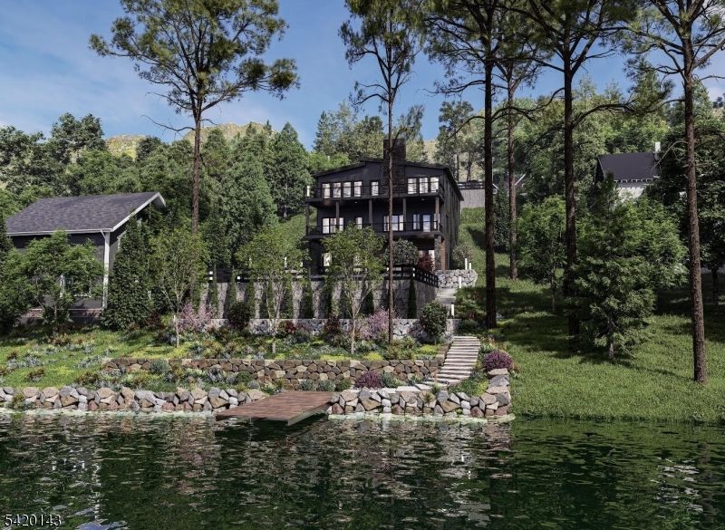 A rare opportunity to own a brand new, architecturally striking lakefront home in the highly sought-after Erskine Lakes community of Ringwood. Thoughtfully designed to embrace the natural topography, this custom residence offers three levels of finished living space (approx 3700 sq ft), expansive decking, and stunning lake views from nearly every room. The main living level features a bright, open-concept layout with a designer kitchen, oversized island, dining area, and spacious family room. Walls of glass and sliding doors lead to a full-width deck perfect for entertaining or simply taking in the peaceful surroundings. A primary suite on this level provides convenience and privacy, complete with a spa-like bath and generous closet space. The middle level offers two additional bedrooms and flexible living space, ideal for guests, home office, or recreation, all designed with modern flow and functionality in mind. The walkout lower level is a true standout, featuring exceptional ceiling height specifically designed to accommodate a golf simulator, along with ample space for a media room, gym, or game area. Direct access to outdoor terraces and professionally designed landscaping enhances the indoor-outdoor lifestyle. Enjoy all that Erskine Lake has to offer, including year round social events, beach club, access to beaches, boating, and a vibrant lake community all just under an hour from NYC. To be built- bring your vision and make this exceptional lakefront home your own.