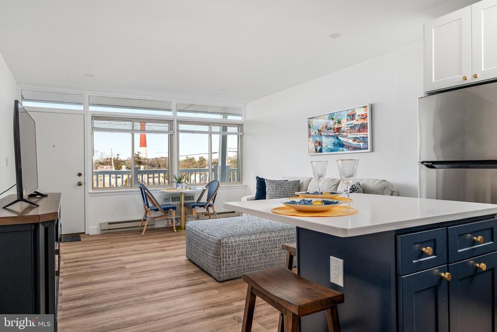 Park your car and settle into the charm of Barnegat Light. This turnkey condo is ready for immediate enjoyment just in time for the fast-approaching summer, with sweeping inlet views and front-row seats to one of the island’s most iconic landmarks — Old Barney. Everything you love about Barnegat Light is just a short stroll or bike ride away. Sip your morning coffee with the lighthouse in view as boats pass through the inlet, or head to LBI’s only waterfront coffee spot, Andy’s Coffee Shack, before taking a peaceful walk through the trails of Barnegat Light State Park for birdwatching or simply soaking in the natural beauty. Ride your bike to Viking Village for the fresh catch of the day—or cast a line from the Inlet Jetty to catch your own. Walk to some of the town’s most popular dining spots just steps from your door, including Daymark, La Riva, Kubel’s, and Kelly’s. In the summer, enjoy the free Monday night concert series just two blocks away at Bay Breeze Park, along with easy access to Barnegat Light’s pristine, nature-filled beaches—one of the island’s true hidden gems. This is a rare opportunity to own an affordable island retreat with a remarkably low condo association fee of just $466 per month, which includes water, electric, and hot water. Whether you’re looking for a summer getaway, investment property, or easy shore escape, this move-in-ready condo offers exceptional value in one of Jersey Shore's most iconic beach towns.