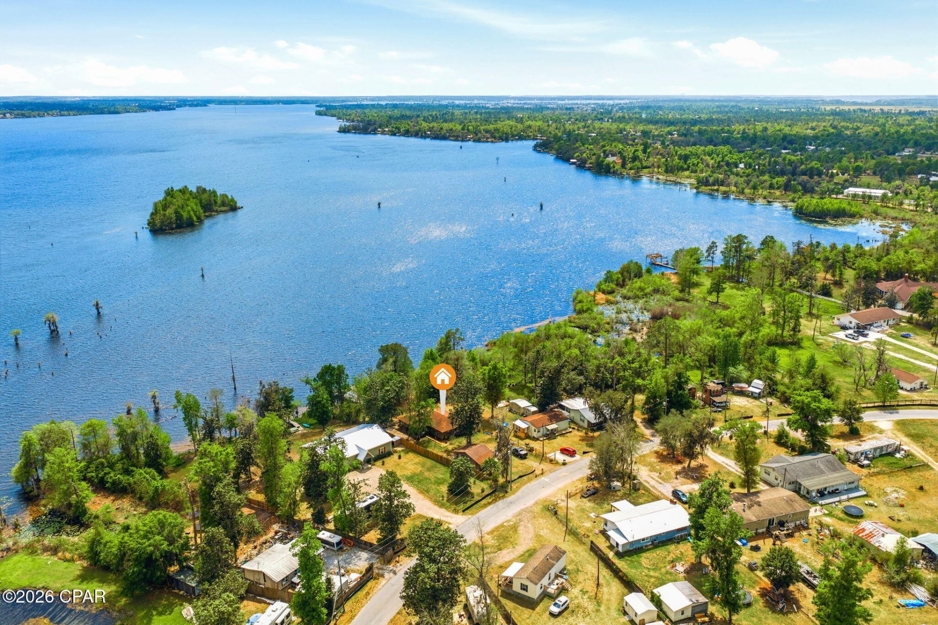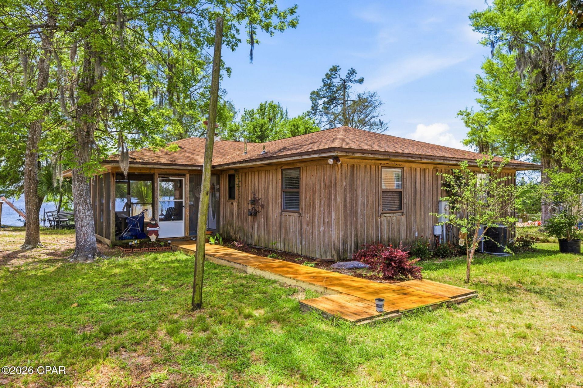 LAKEFRONT Living on Deer Point Lake! Welcome to 4344 Huckleberry Lane, a hidden gem nestled on the pristine shores of Deer Point Lake in Southport, Florida. This beautiful waterfront property offers the perfect blend of serenity, space, and stunning views--ideal for outdoor lovers, fishing enthusiasts, and anyone craving a peaceful retreat. Enjoy direct access to the lake from your own backyard, where you can fish, kayak, or watch the sunset over the water. Whether you're seeking a full-time residence or a weekend getaway, this home offers a rare opportunity to live on one of Bay County's most desirable freshwater lakes. This charming 2-bedroom, 1-bathroom lakefront home is thoughtfully designed for comfort, accessibility, and relaxation. With ADA-friendly features like wider doorways to accommodate a wheelchair, it's ideal for anyone who values ease of movement without sacrificing style. Step inside to an open concept living space, where the kitchen takes center stage with a central island and breakfast bar, durable cabinetry, and plenty of storage. The south-facing wall is lined with windows that flood the home with natural light and offer panoramic views of Deer Point Lake, bringing the outdoors in, every day. A spacious utility room allows for either a side-by-side or stackable washer and dryer setup, adding functionality to your everyday routine. Just off the main living area, you'll find a large screened-in patio--perfect for sipping coffee, watching the wildlife, or unwinding with a book in the breeze. The home's rough-cut cedar siding is both beautiful and durable--well-suited for Florida's rugged climate. Whether you're searching for a full-time residence or a peaceful retreat, this lakefront gem delivers accessibility, character, and unbeatable views. This tight knit community has no HOA fee, and your lender will not require you to carry flood insurance as this home sits higher than the AE flood zone. This community features underground utilities, city water and city sewer is binging installed in the community. This home also has an irrigation well for watering your plants or anything else you would like to do. The HVAC system is only a few years old and the roof on the home was replaced in 2019 Call for a showing today.