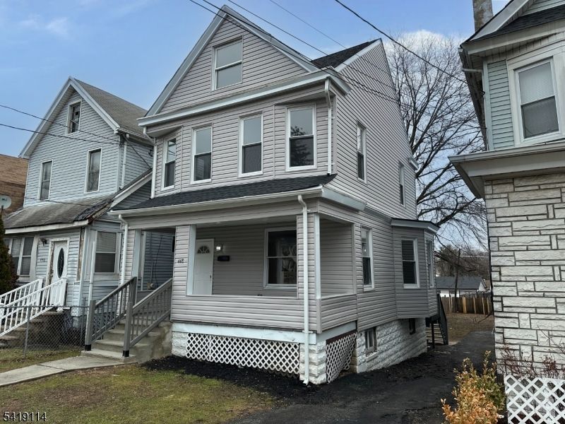 This Colonial home features traditional architecture and classic styling. The property offers comfortable living spaces with authentic design elements that reflect the timeless appeal of Colonial construction. This four-bedroom home features luxury vinyl plank throughout the main level, living room, and formal dining area. The kitchen includes stainless steel appliances, gas range oven, granite countertops, and tile backsplash with recessed lighting. Recent updates include a new furnace and hot water heater. The property offers excellent outdoor living with a covered front porch and private driveway for convenient parking. The enclosed rear yard provides privacy and seclusion, featuring a private backyard view that creates a peaceful retreat. New siding enhances the home's exterior appeal. Located close to Springfield Avenue shopping, this residence combines comfort with convenience. Some images in this listing have been virtually staged.
