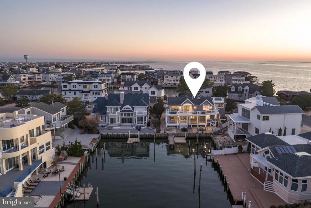 Stunning bayfront home in Harvey Cedars, expanded and re imagined by architect Jay Madden, AIA, and built by JS Pro Construction. Located at the end of a lagoon on a highly desirable street, this 4BR, 4.5BA home features reverse living with beautiful Bay and Lighthouse views from both levels. The upper level offers an open-concept living, dining, and kitchen area with custom cabinetry, stone gas fireplace, and walls of glass overlooking Barnegat Bay. The primary suite includes an adjacent office/exercise room with built-ins. The lower level features a spacious den with wet bar, opening to the backyard—ideal for entertaining. Outdoor spaces include a rooftop deck with panoramic views, a full-length second-floor deck with glass railings and gas hookup, and a covered, partially screened porch. 50 ft of vinyl-bulkheaded waterfront with deep-water TREX dock and floating launch provides easy access to the IntraCoastal Waterway. Just a short walk to the beach and close to town for dining, shopping, and more. Exceptional bayfront living on Long Beach Island.