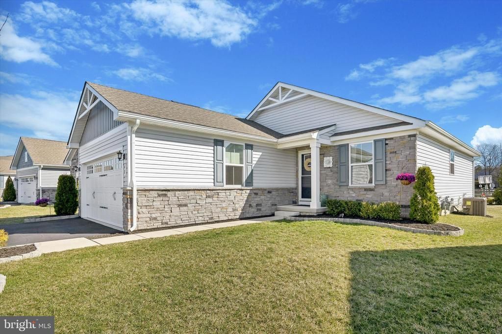 Stop looking for your next "one floor living" home because THIS IS THE ONE! Thoughtfully designed and strategically upgraded modern adult community Legacy Acres is the place and this is the space for you! This young community of 92 properties boasts 5 years young energy efficient Ryan Homes and a welcoming neighborhood full of vitality in a prime desirable location between the shore points and bustling Philadelphia. 48 Senators is thoughtfully designed with beautiful curb appeal, 2 car oversized garage and charming front porch. The stacked stone and vinyl siding are modern yet classic and sprinkler system and HOA maintained lawn make this community appealing to the busy buyer! Step inside the sunlit foyer and you're greeted by gleaming warm wide planked vinyl flooring, crisp neutral paint and modern energy efficient amenities! The flex space to the right of the entry is currently a dining room, but could easily transform to a home office or second living room depending on your lifestyle! Across the entryway is a spacious guest bedroom perfect for hosting friends or multigenerational family living/visits. Plush carpet pads both this and the primary bedroom in neutral tones. The hall bathroom is practical with a tiled tub/shower combo and brushed nickel fixtures with ample vanity storage. Steps down the hallway the space unveils into a modern loft style open concept kitchen/living room space perfect for casual nights in or entertaining. Prep dinners for two or bake cookies with the grandkids on the upgraded countertops as the stainless steel energy efficient appliances make cooking/baking a breeze and the classic white shaker cabinets make picture perfect aesthetics. The living room space has been thoughtfully designed with rear facing windows to let in the morning light, recessed lighting with dimmers dot the ceiling and sliding doors for backyard access. Main Floor laundry room is located next to the primary bedroom for ease and convenience. Energy efficient washer/dryer in white match the additional storage cabinets that could double as pantry overflow or cleaning/laundering supplies. Tucked to the back of the home the primary bedroom is a welcome retreat! Featuring a spacious walk in closet with built in shelving and ensuite bathroom with walk in shower, this bedroom is built and designed to age with you! The ensuite bathroom echoes the tones and tile as well as the brushed nickel finishes of the front bathroom for a whole home cohesiveness. Downsizing doesn't have to mean tiny! Downstairs find an unfinished basement housing the systems/storage shelves and waiting for you to make your own! Wondering how you'll transition all of your current furniture to less square footage? This additional space gives you the headspace to organize it all and transform the property over time! Use it as you move in to house holdover furniture or for storage, then design the space for what you need later! A second living room, sports room, home gym, library, workshop-the possibilities are endless! 10 Year Warranty and 5 year Tax Abatement are transferrable to new owner! Don't miss 48 Senators Way! Come check out our Open Houses or book a showing today!