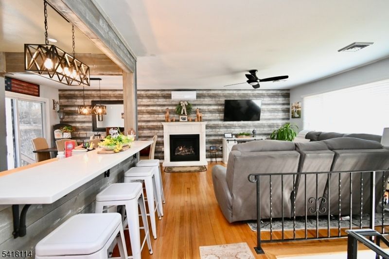 Welcome to this well-maintained 3-bedroom, 2 full bath, 1 car garage bi-level home nestled in the desirable Lake Swannanoa section of Jefferson Township. Offering a peaceful park like setting nestled on 2/3 of an acre of pristine privacy. This home is perfect for those seeking both comfort and lifestyle. The home features a functional and inviting layout with multiple living spaces, ideal for everyday living and entertaining. Natural light fills the interior, highlighting the home's warmth and charm throughout. The upstairs was recently updated with a new butcher block and quartz countertop, stainless appliances, large custom sink, updated bathroom, and a new natural gas fireplace with mantle. Lower level includes an updated breakfast room with black appliances, new countertop & sink, newer furnace, central air with additional mini split systems, and freshly painted. Outside there is a double level deck giving access from each level, new deck awning, above ground swimming pool, gazebo, 2 sheds with plenty of storage, and much more. Outdoor furniture is included. Home is perfectly set up for shared housing. A must see!