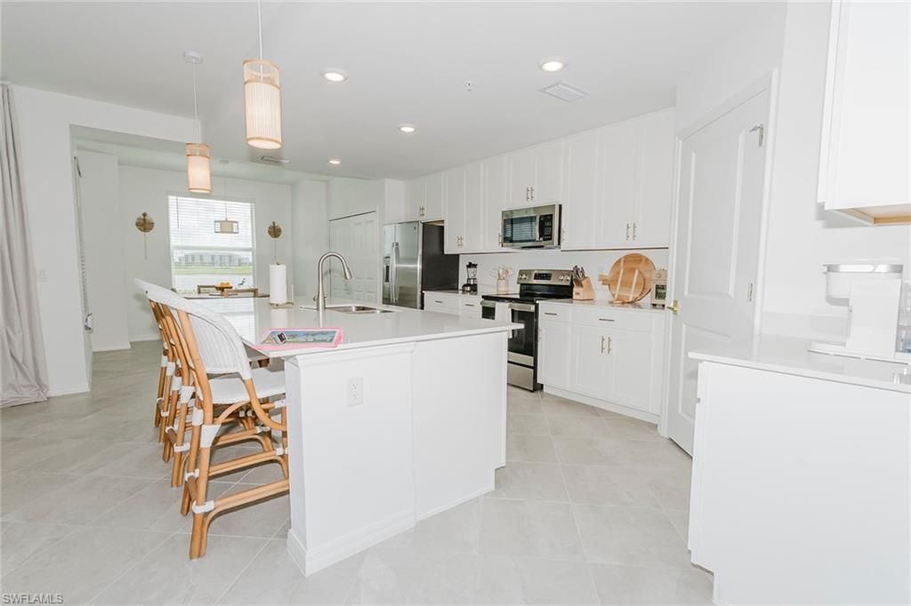 One or more photo(s) has been virtually staged, AI generated or rendered. Soak up the sunshine in beautiful Ave Maria, Florida! Welcome to your slice of paradise—this stunning 2-bedroom + den Diangelo condo offers breathtaking golf course and lake views, enjoyed from TWO screened lanais, just waiting for you to call it home. Imagine starting your day with coffee and a sunrise or winding down in the afternoon with a cold drink and a great book—pure bliss. Step inside to a spacious, open-concept layout with warm cream and beige tones that perfectly complement the lush scenery outside. And the best part? Its a highly desirable first-floor unit—easy access, no stairs, and just steps from everything you need. Got a furry friend? Pets are welcome on a case-by-case basis. Golf lovers, you’re in for a treat! Enjoy exclusive access to the prestigious Gordon Lewis-designed course, with the transfer of the golf membership! The National also features a stunning resort-style pool with a Tiki bar, a brand-new clubhouse with an incredible restaurant and bar, plus pickleball, tennis, bocce ball, a full gym, fitness studio, day spa—you name it. This is the year to treat yourself. Ave Maria ~ Once you get here, you "get it."
