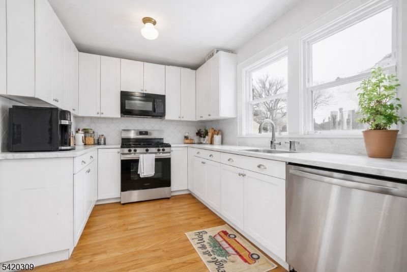 6 Franklin Ave is a 4 Bed 3 Full Baths home with a multi-level layout offering a good amount of space and flexibility. The main level includes living and dining areas with hardwood floors, along with an additional front room that can be used as an office or sitting area. The kitchen features white cabinetry, stainless steel appliances, and an eat-in area. Upper levels include four bedrooms and three full bathrooms, including one with a jetted tub, plus an additional finished level that can be used for a variety of purposes. The finished basement includes a full bathroom and laundry area, providing additional usable space. Detached two-car garage and driveway parking. Property offers strong potential and is being sold as-is. Convenient location near Montclair downtown, parks, and NYC transportation. Some photos virtually staged.