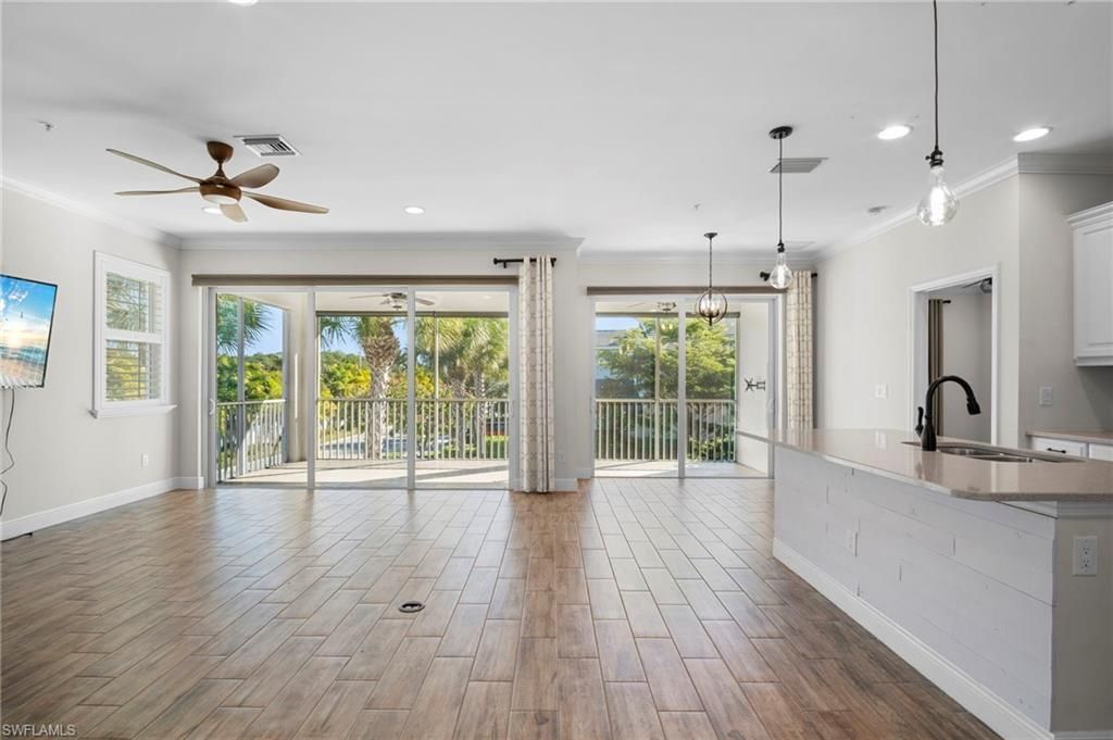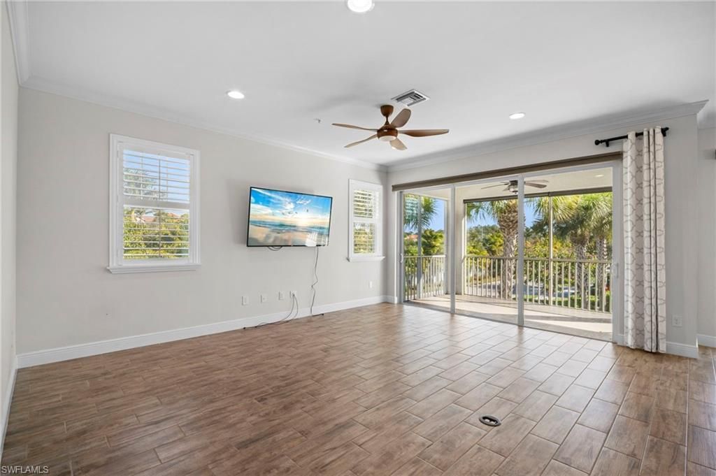 Experience the ultimate in coastal luxury in this meticulously maintained coach home within the exclusive, gated enclave of Avalon of Naples. This bright, open-concept residence lives like a single-family home, featuring durable plank tile flooring and a seamless transition to a large, screened lanai via a wall of glass sliders. The designer kitchen is a chef’s dream, anchored by a custom ship-lap island and outfitted with quartz countertops, upgraded cabinetry with pull-out shelving, and premium stainless appliances. Built for both style and security, the home boasts full hurricane impact windows and doors, plantation shutters, and remote-controlled shades. Every detail has been elevated, from the custom-organized master suite closet to the reinforced storage systems in the garage. Nestled on 17 lush acres with serene lake and preserve views, this pet-friendly community offers a boutique lifestyle just minutes from the world-class dining, shopping, and white-sand beaches of downtown Naples.