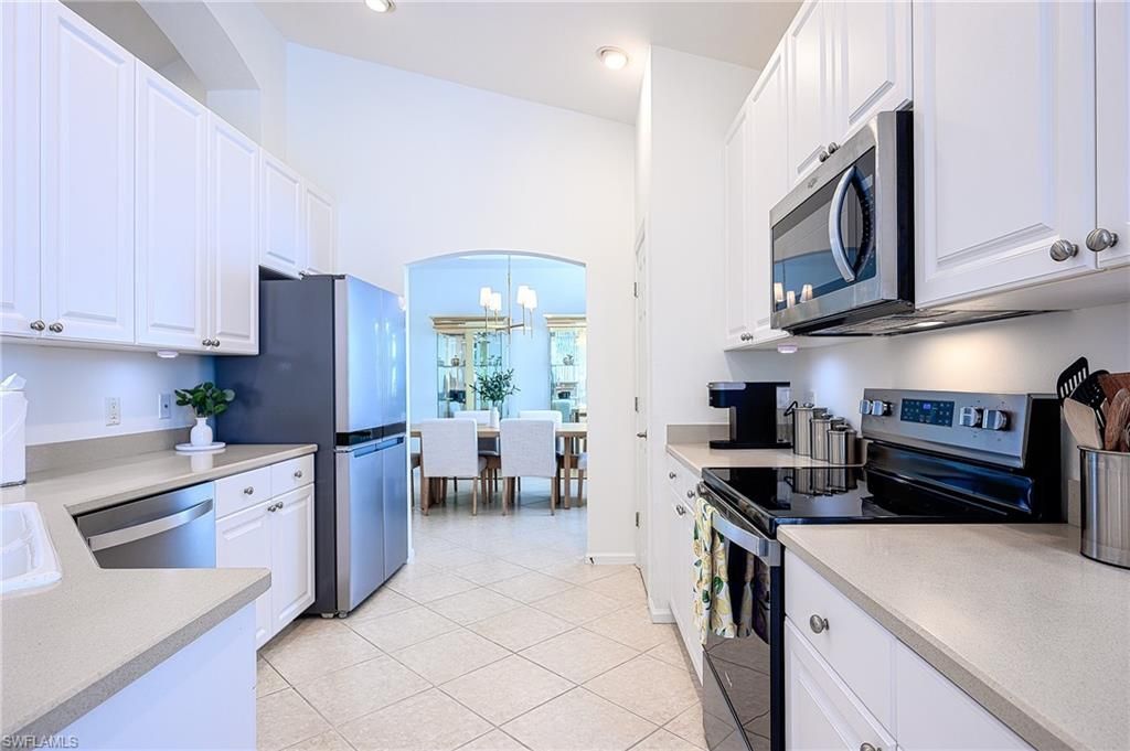 Luxury, Location & Lifestyle in the Heart of North Naples! Available for annual rental IMMEDIATELY at $3,500 per month. Owner may consider a shorter-term lease at a higher rate. This fully renovated and furnished second-floor condominium in the highly sought-after Autumn Woods community offers over 2,000 square feet of upscale living with the comfort and privacy of a single-family home. Recent updates include fresh interior paint, brand-new luxury flooring, stylish new furnishings, stainless steel appliances, and a reverse osmosis water filtration system for added convenience. The spacious floor plan features three bedrooms, two full bathrooms, a dedicated office/workspace, an eat-in kitchen, separate dining area, walk-in closet, and soaring vaulted ceilings that create a bright, open ambiance throughout. Enjoy peaceful lake views and nightly sunsets from the expansive screened lanai—perfect for relaxing or entertaining. Additional highlights include a private one-car garage with direct interior access and a quiet cul-de-sac location directly across from the community pool. The condo is fully stocked with kitchenware, linens, and bathroom essentials, making it ideal for corporate housing, insurance relocations, or seasonal stays. Autumn Woods is a 24-hour manned, gated community offering exceptional amenities, including a clubhouse, fitness center, tennis and pickleball courts, basketball court, heated pool and spa, playground, and over two miles of walking trails set among 26 acres of natural preserve and 20+ scenic lakes. Residents enjoy a prime North Naples location just minutes to Vanderbilt Beach, Mercato, Waterside Shops, Whole Foods, and less than 15 minutes to 5th Avenue South. The property is located within an A-rated Collier County school district and close to several private schools. HOA approval is required, including a $150 application fee and a $50 background check per adult, with processing time of up to 20 days.