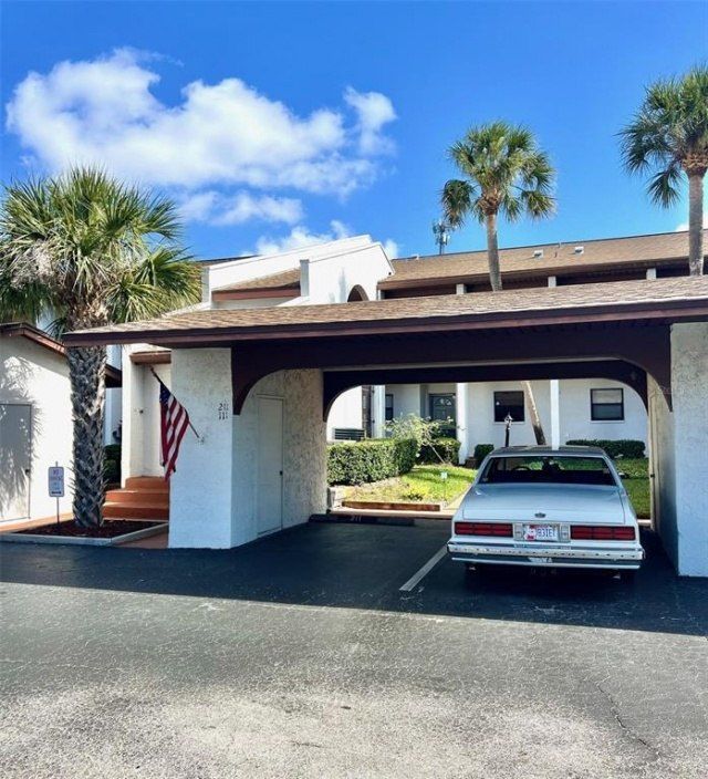 Orchards of Radcliffe 55 Plus Condo for sale now! Located in Port Richey Florida within a gated community. The community features Community Pool, Spa, Clubhouse and the HOA Fee includes everything for you except your electrical! Add to your short list to view in person and give us a call to schedule tour. This exceptional condo is located on the second floor near the Stairs with its own sitting space out front and a rear covered & screened in porch as well. Important Items: New Roof 2019, new AC unit was installed in September 2022, and new Tankless Water Heater was also installed in September 2022 and a new electrical panel March 2023. Inside is 1,174 Sq feet but feels even larger plus it has walk-in closets in each bedroom and an exterior storage space at your own Carport. Condo has 2 Bedrooms and Two full Baths, newer front door, Fans, Blinds, Appliances, almost new furniture, 4 TVs, washer & dryer included with laundry room located inside the unit and more. **Furniture Included** This condo features a Breakfast Bar, dining area that is framed in, a generous Wet Bar for entertain your guests, high ceilings and triple wide sliding door to the spacious lanai with TV. Another great thing to know is that there are multiple guests parking spots in the community! Compaction grouting and pin piles installed throughout the community in 2017. Owners & Pets are welcome and HOA will approve. Have you called us yet?? This is a great place to call home year around or to use it as a second home! Located near restaurants, Places of worship, hospitals, shopping, beaches, multiple downtowns and the airports. Sold ASIS. We are waiting on your call!