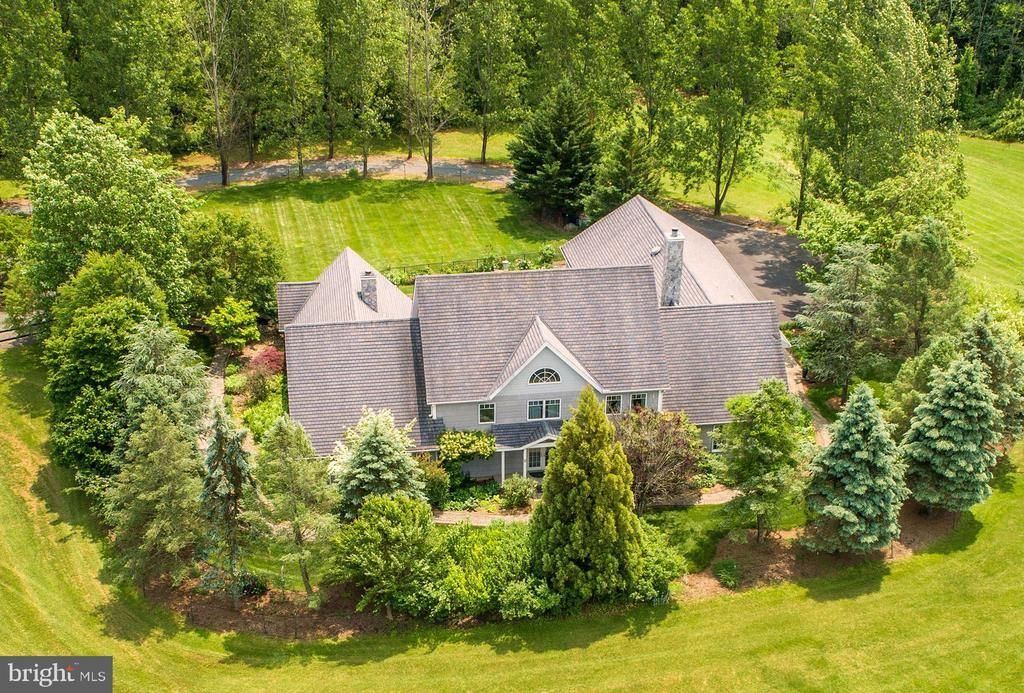 Discover this beautiful one-of-a-kind custom home offering 5,600 square feet of open living space on a sprawling and private 9-acre lot. Built by an engineer, this meticulously crafted home is being offered for the first time showcasing a thoughtfully designed residence with a flexible floor plan and expansive outdoor spaces thus presenting a unique opportunity to own a truly exceptional property. The home offers large, open rooms and areas with high ceilings and lots of windows making it not only bright but also presenting beautiful views of the property and gardens. Upon entering the home, one is greeted with 2 story ceilings and beautiful Brazilian cherry hard-wood floors. There is an oversized living area large enough to create two separate gathering spaces as well as a two-sided fireplace which also faces into the gourmet kitchen. The kitchen has beautiful custom solid cherry wood cabinetry, glass fronted cabinets and large dual islands with granite counter tops making it a dream kitchen for both the chef and for entertaining family and friends. There are also French doors leading out the pool area and pergola making it convenient for al fresco dining. There is also a large formal dining room. The home has an expansive first floor primary suite which includes a large windowed sitting area with views of the gardens, a two-sided fireplace which also faces the beautiful en-suite bath, walk in closet and French doors out to the pool terrace. The first floor also offers a second bedroom, a large in-home office which could also serve as another bedroom, one full and one-half bath, a large pantry, a “grill room” with French doors out to the pool area, a large laundry room, a mud room and an in-home gym. The second floor has two additional well-sized bedrooms with a jack and jill bath. The pool area offers a large, fenced terrace area with a free-form pool, stone walls, a waterfall and beautiful gardens. There is also a lovely pergola for relaxing or dining. An oversized 3 car garage provides lots of space for a workshop as well as storage. There are also multiple outbuildings on the property providing ample storage for equipment. The home also offers a whole house generator ensuring uninterrupted comfort and security. This exceptional property combines luxurious comfort with outdoor recreation and practical features making it a perfect sanctuary for those seeking space, style, versatility and privacy. Surrounded by hundreds of acres of preserved land. The property is located minutes from Flemington. It is 70 minutes to NYC and 30 minutes to Princeton and Princeton Junction Amtrak station.
