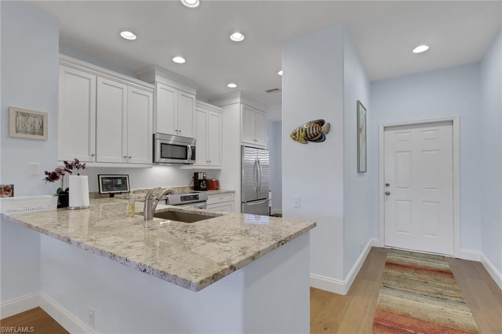 Welcome to Vanderbilt Country Club, one of Naples’ most desirable bundled golf communities. This beautifully maintained first floor condo offers 2 bedrooms and 2 bathrooms with a stunning lake view that creates a peaceful, resort style backdrop from your main living areas. The residence features an open floor plan with high ceilings that enhance the natural light and spacious feel of the home. Beautiful wood look flooring flows throughout the main living area, adding warmth and durability to the space. The updated modern kitchen is designed for both style and functionality, showcasing tall cabinetry, single level countertops, stainless steel appliances, and a clean contemporary finish that flows seamlessly into the living and dining spaces perfect for entertaining or everyday living. Enjoy the convenience of first floor living paired with serene water views, comfortable indoor-outdoor flow, and the added benefit of a satellite pool just a short walk from your front door. Vanderbilt Country Club offers an exceptional lifestyle with bundled golf and an active social calendar that ensures there is always something to enjoy. The recently redesigned resort-style pool feels like a Caribbean getaway, surrounded by lush landscaping and relaxation spaces, and features the popular Terrace Café poolside bar and restaurant. Residents also enjoy tennis, bocce ball, and pickleball courts, a well-appointed fitness center with a full-time attendant, and an on-site spa for ultimate wellness and leisure. The clubhouse has also been recently updated, offering beautiful gathering spaces along with multiple dining options, including a second full-service restaurant inside the clubhouse. Golf enthusiasts will appreciate the Aqua driving range, adding a unique and elevated practice experience to the community’s premier golf amenities. This is the perfect opportunity to enjoy luxury, community, and the Naples golf lifestyle all in one.