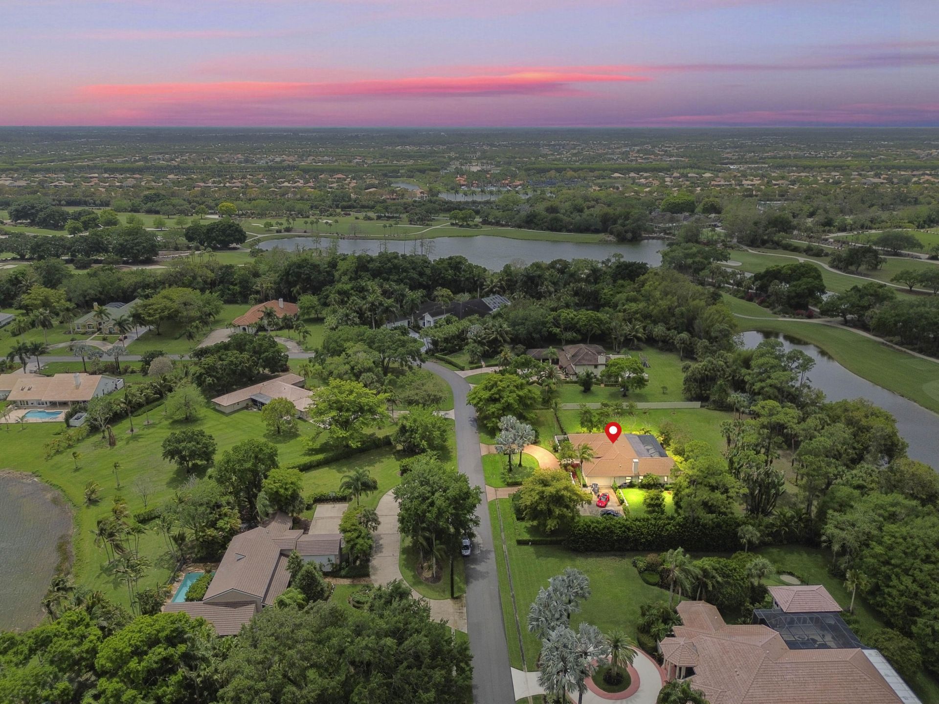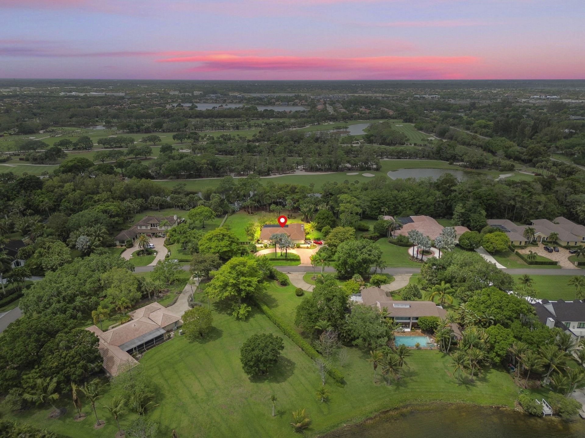 Welcome to Banyan Estates, a gated community offering privacy, space, and true Florida living. This beautifully maintained 1-story home sits on 1.09 acres and features 2,843 sq ft of living space, a 2-car attached garage, and a circular driveway for added parking. The spacious new master suite features elegant porcelain tile floors and direct access to the private screened patio enclosure. Outdoor living is unmatched. This is one of the few homes that backs up to the Banyan Golf Club, offering exceptional privacy and serene lake views. Enjoy peace of mind with accordion shutters, impact windows, and a newer roof. Residents of this exclusive community enjoy more than tennis courts here; you can take advantage of water activities on the private lake Myrna, perfect for kayaking, jet skiing, and soaking in the Florida lifestyle. Imagine relaxing in your expansive, tropical grounds, sipping a fresh smoothie made from mangos and avocados picked right from your own fruit trees. A rare opportunity to experience space, privacy, and resort-style amenities, all you need to live comfortably! Regarding the location: easy access to FL Turnpike (2 miles), Palm Beach International Airport (9 miles), Wellington's Polo grounds, shopping, groceries (Publix, Wholefoods, Trader Joe's), and restaurants (3 miles), Wellington Regional Hospital (3 miles), incredible 1,700 acres of public use at Okeeheelee Public Park (2.4 miles).