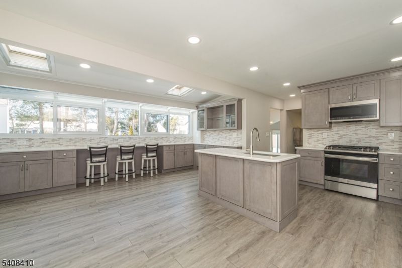 Picture-perfect expanded ranch nestled in one of East Hanover's most sought-after neighborhoods. This stunning 4-bedroom, 2.5 bath ranch boasts exceptional curb appeal, an open and airy floor plan, and an impressive list of upgrades throughout. The gorgeous, updated kitchen is the heart of the home, featuring a large center island, custom cabinetry, quartz countertops, and stainless steel appliances seamlessly opening to the formal dining room, ideal for entertaining. A sun-filled living room with a charming bay window welcomes you, while the dramatic family room impresses with soaring ceilings and skylights that flood the space with natural light.The luxurious primary suite offers a private retreat with an updated bath, complemented by three additional generously sized bedrooms and a beautifully renovated main bath plus the flexibility to use a bedroom as a home office. The finished basement is an entertainer's dream with new flooring and a stylish bar. Step outside to a true backyard oasis: a spectacular covered space with a composite deck,a heated in-ground pool and a serene koi pond perfect for both relaxing and hosting unforgettable gatherings. Additional highlights include a two-car garage, full-house generator, front and back sprinkler system, and so much more.
