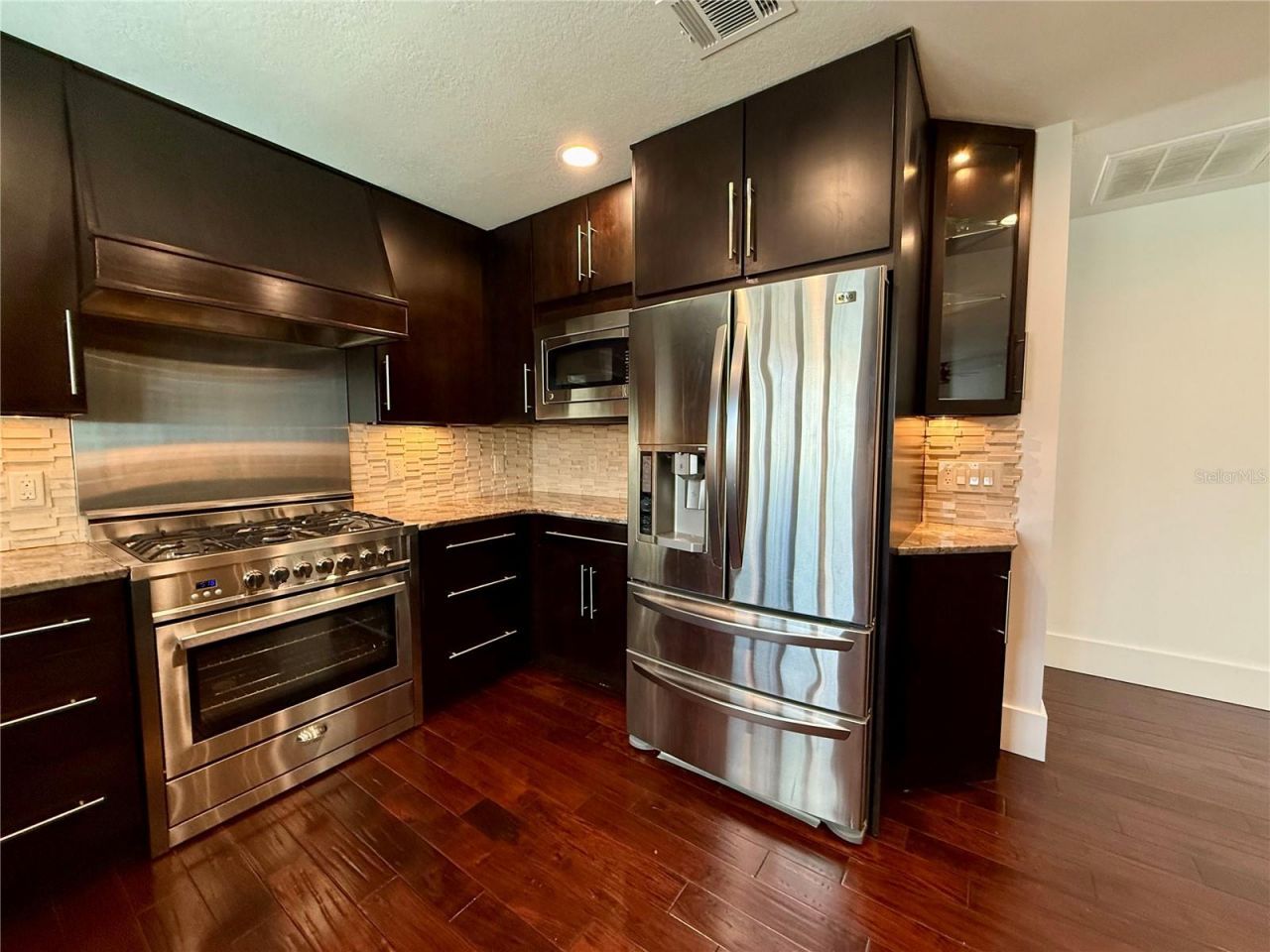 JAW DROPPING GORGEOUS! Over 2000 square feet of luxury living abounds in this newly updated home. Owner has spent over $40,000 in the past year to elevate this home to the highest standard. A brand new HVAC system was installed just months ago. Just a few of the recent upgrades include a professionally painted interior, 7 1/2 inch all wood baseboards, all new lighting and fans plus stunning plantation shutters throughout the home. The kitchen is out of this world amazing! Including high end solid wood slab custom cabinetry featuring all the bells and whistles like built in accessories throughout, undercabinet lighting, glass lit accent cabinets and the high end professional stainless steel appliances. Additional features include custom newer double insulated windows and a tankless hot water heater. The rich dark wood floors are in all the living areas as as well as all the bedrooms. Enjoying the outdoors is a breeze with a huge screened porch plus a beautiful paved lanai looking over a serene treed lined private common area. This home has a beautiful additional gathering space overlooking the backyard featuring vaulted ceilings. Low maintenance artificial turf, pavers and rock gardens make yard work a breeze. SUPER low HOA fees plus a community pool and tennis courts for your enjoyment. This property is AMAZING!!