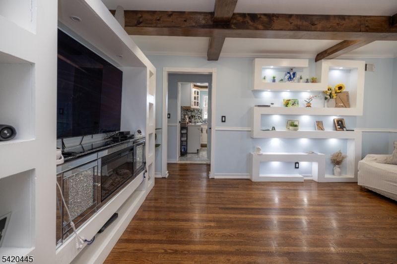 Beautifully renovated home located in Hillside offering a perfect blend of modern updates and functional living space. This well-maintained property features a bright and inviting living room with custom built-ins, exposed beam ceilings, and gleaming hardwood floors throughout. The updated kitchen showcases stainless steel appliances, custom cabinetry, stylish backsplash, and direct access to a spacious rear deck?perfect for entertaining. Multiple generously sized bedrooms provide flexibility, including a finished upper-level space ideal for a primary suite or additional living area. The fully finished basement offers additional living space, perfect for a recreation room, home office, or guest area. Updated bathrooms feature modern finishes and fixtures. Enjoy outdoor living with a large backyard, deck, and patio area, ideal for gatherings or relaxation. Private driveway and ample outdoor space complete this move-in ready home.Conveniently located near major highways, shopping, and public transportation.