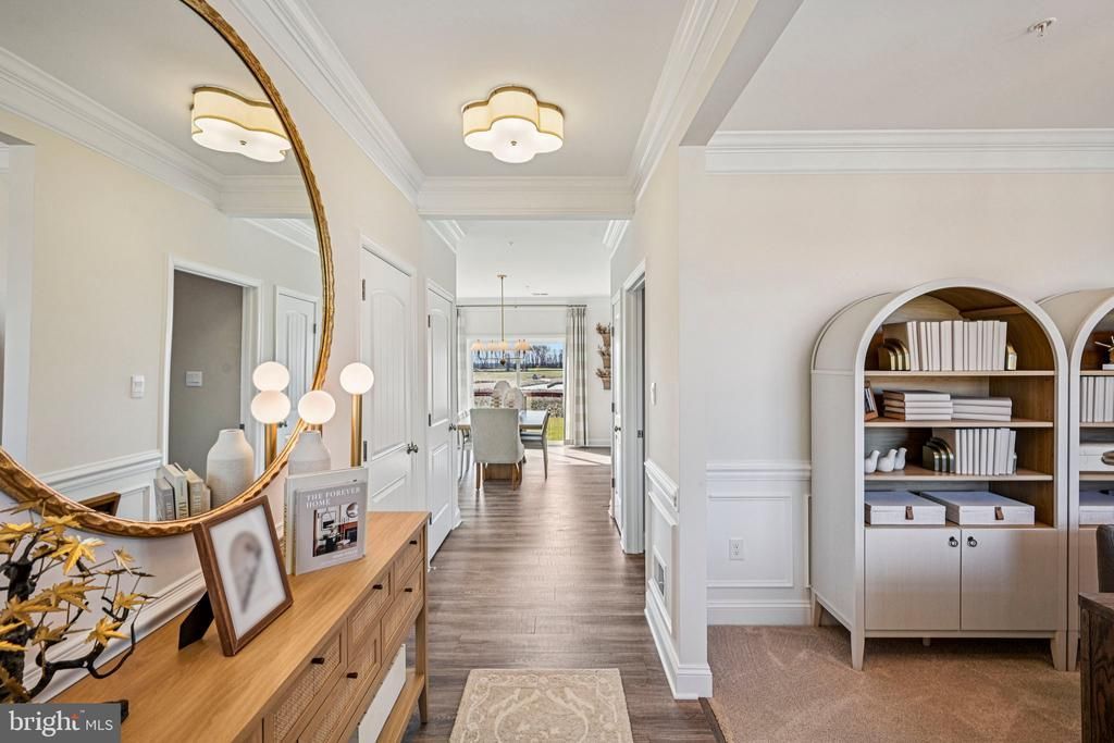 Explore a to-be-built new home in our newest neighborhood, The Granary, in Milton, DE. This home is not currently under construction but is one of the floorplans you can choose to build within this community. Prices vary based on selected upgrades, and prices shown generally refer to the base house without optional features. You’ll work with the builder to select from the plan options to construct your dream home. The Galen, a 2,340 square foot two-story home, offers four bedrooms, two and a half bathrooms, a flex room, 9’ ceilings and a two-car garage. This well-designed home has an inviting foyer that is open to the functional flex room that can be used as an office, playroom or formal dining space. The well-appointed kitchen features space-efficient cabinetry and countertop space, an oversized corner pantry, a spacious island with a sink and additional room for seating along with stainless-steel appliances. The kitchen flows seamlessly into the dining space and the sizeable great room. The first floor also offers a powder room, coat closet and storage area. As you make your way up the stairs that are nestled in the corner of the great room you will find a vast landing. The impressive owner’s suite boasts an expansive bedroom, a huge walk-in closet and a contemporary owner’s bathroom with a large shower and toilet closet. Three generously sized secondary bedrooms, a spacious hall bathroom with double vanity, and the conveniently located laundry room complete the upstairs. Pictures, artist renderings, photographs, colors, features, and sizes are for illustration purposes only and will vary from the homes as built. Image representative of plan only and may vary as built. Images are of model home and include custom design features that may not be available in other homes. Furnishings and decorative items not included with home purchase.